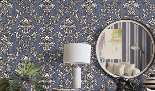Odessa Striped - Blue, Cream & Silver Wallpaper