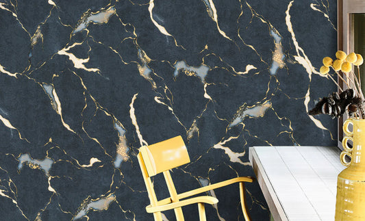 Odessa Marble - Navy Blue, Gold & White Wallpaper