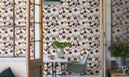 Maki Geometric - Gold, Gray, Cream & Silver Wallpaper